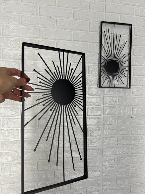 تابلو فلزی دکوراتیو طرح خورشید، انتخابی چشمنواز برای افرادی است که به دنبال القای حس گرما، انرژی و روشنایی در فضای داخلی هستند. طراحی هنرمندانه این تابلو با خطوط منظم و برشهای دقیق، جلوهای پویا و تاثیرگذار روی دیوار ایجاد میکند و بهراحتی به نقطه کانونی دکوراسیون تبدیل میشود.