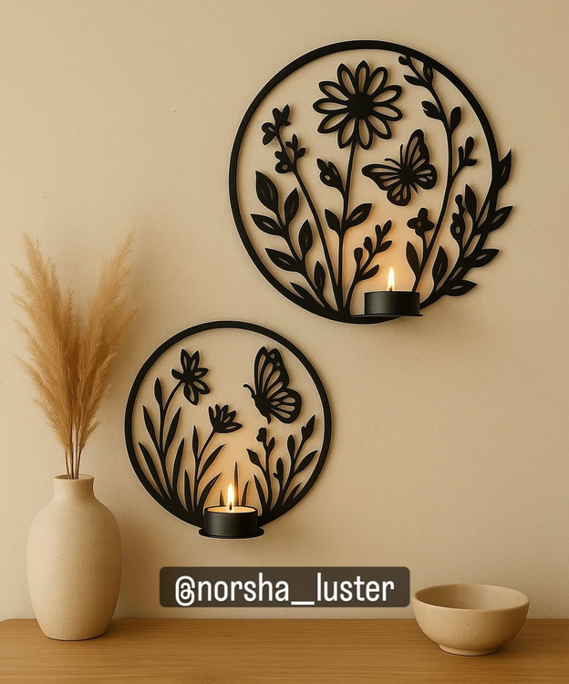 جاشمعی دیواری فلزی لیزری طرح گل به صورت دایرهای، ترکیبی چشمنواز از ظرافت هنری و نورپردازی گرم است که جلوهای خاص به دیوارهای شما میبخشد. طراحی گرد این محصول با برش دقیق لیزری، نظم و تقارن زیبایی ایجاد کرده و با روشن شدن شمع، سایههایی لطیف و رمانتیک در فضا پخش میکند.