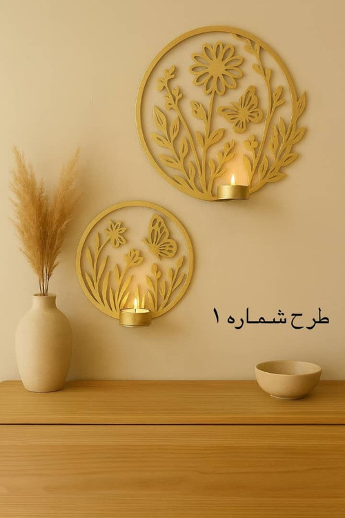 جاشمعی دیواری فلزی لیزری طرح گل دایرهای (۶۰ و ۳۰ سانتیمتر) – رنگ مشکی و طلایی