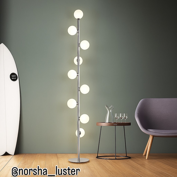 این آباژور علاوه بر تأمین نور مناسب، بهعنوان یک عنصر دکوراتیو شاخص عمل کرده و میتواند نقطه کانونی جذابی در نشیمنهای بزرگ، لابیها یا فضاهای مدرن باشد.