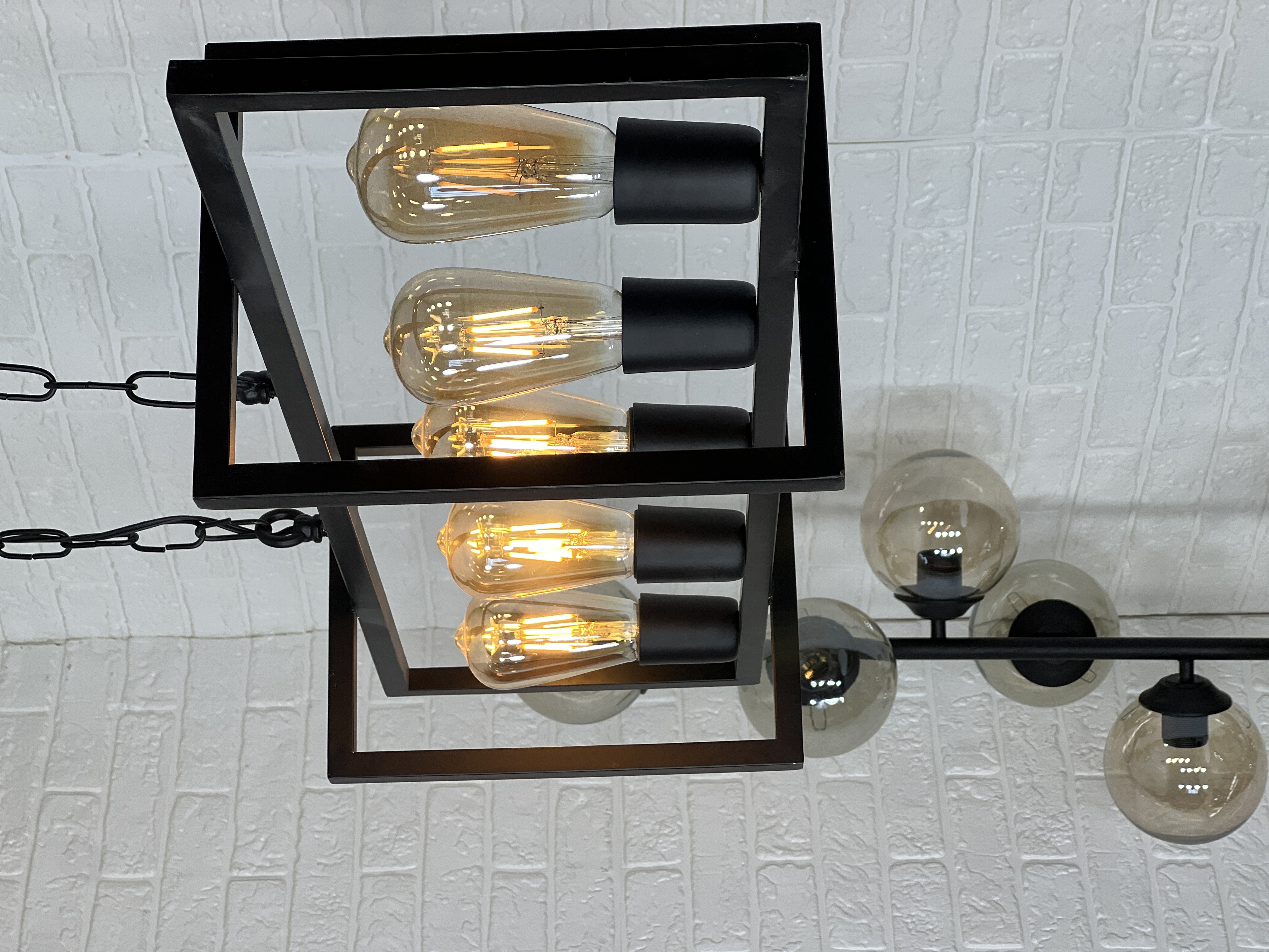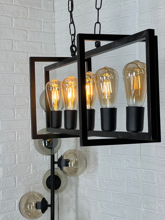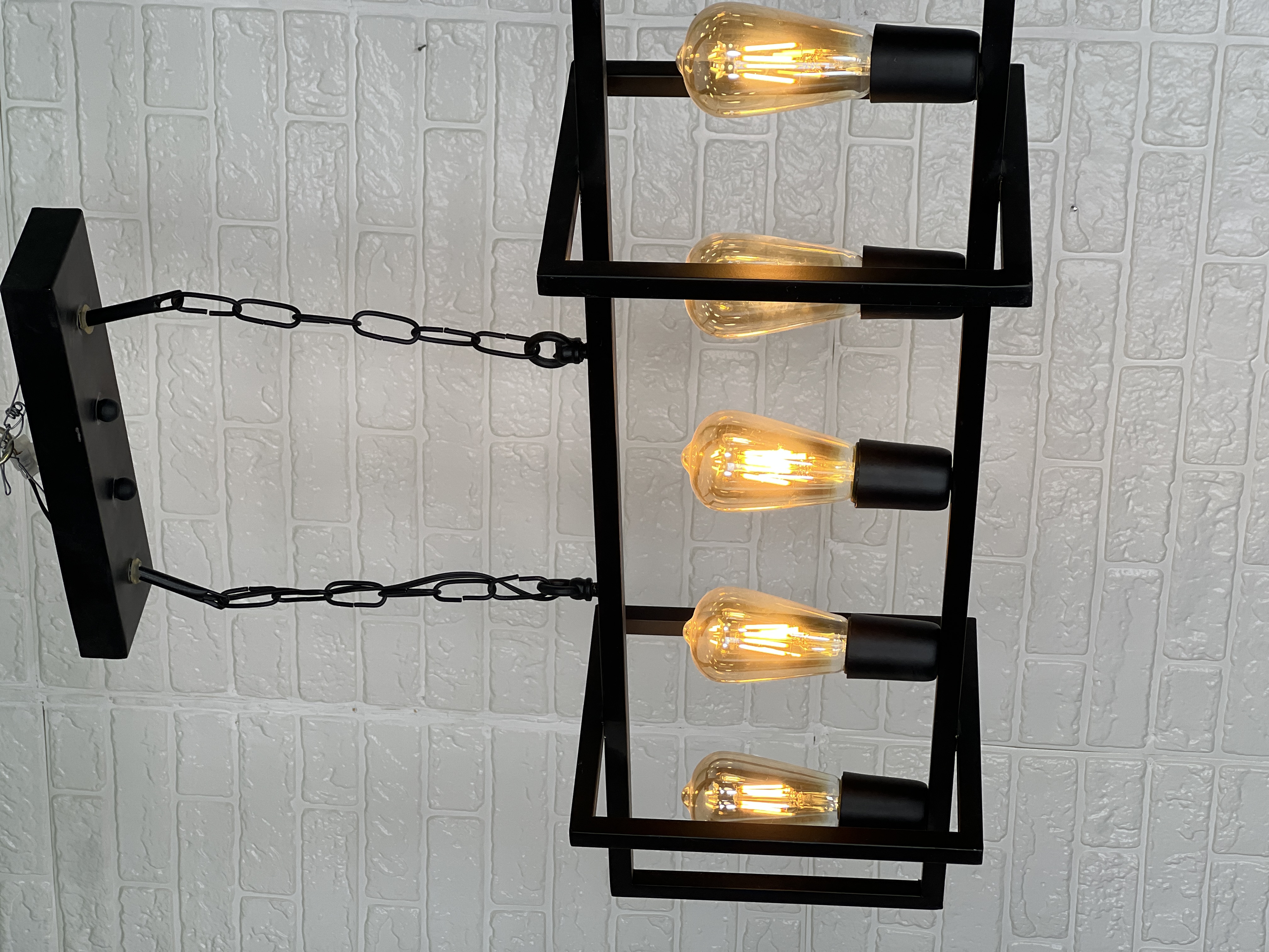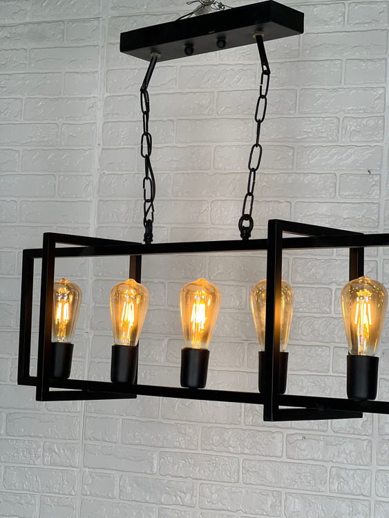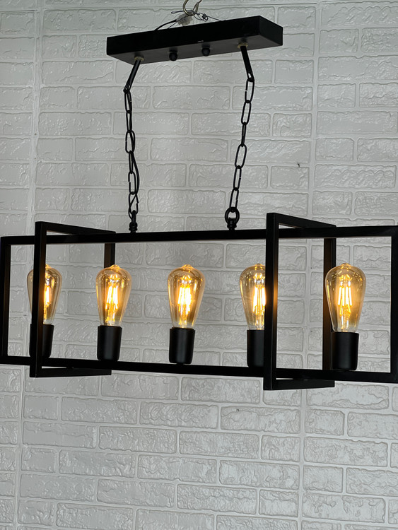 لوستر کانتری مستطیلی ۵ شعله مشکی بدون حباب – مناسب جزیره آشپزخانه