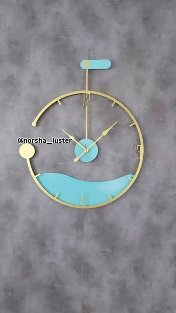 این ساعت دیواری مدرن با طراحی خلاقانه و ترکیب رنگ طلایی و فیروزهای، جلوهای متفاوت و چشمنواز به دکوراسیون شما میبخشد. فرم دایرهای باز در کنار المانهای هندسی و جزئیات منحنی پایین صفحه، این مدل را به یک اثر هنری دیواری تبدیل کرده است.