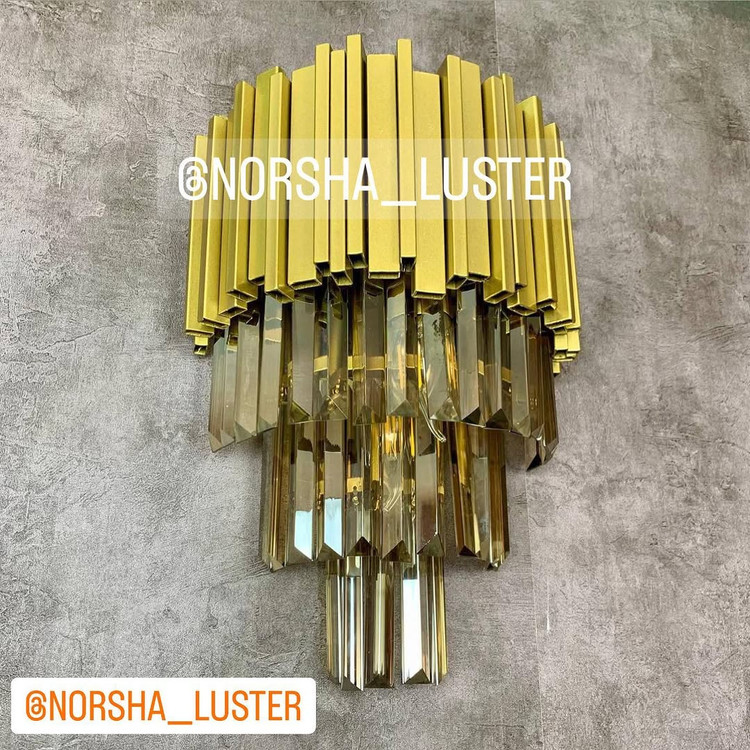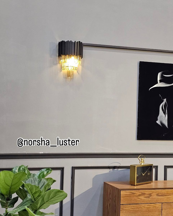 دیوارکوب کریستالی با طراحی منحصربهفرد و جزئیات درخشان، جلوهای باشکوه و لوکس به فضا میبخشد. این دیوارکوب نه تنها یک منبع نور است، بلکه مانند یک تابلوی هنری، دیوار را زنده و پرجلوه میکند.