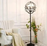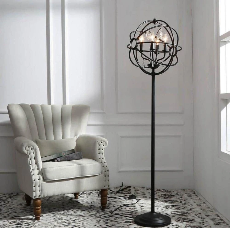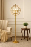 آباژور ایستاده مدل R170.3 تلفیقی از طراحی صنعتی و زیباییشناسی هنری است. این مدل دارای سه شعله با لامپ های شیشهای شفاف است که هرکدام درون حلقهای فلزی قرار گرفتهاند. حس تعادل و پویایی را به فضا میبخشد.